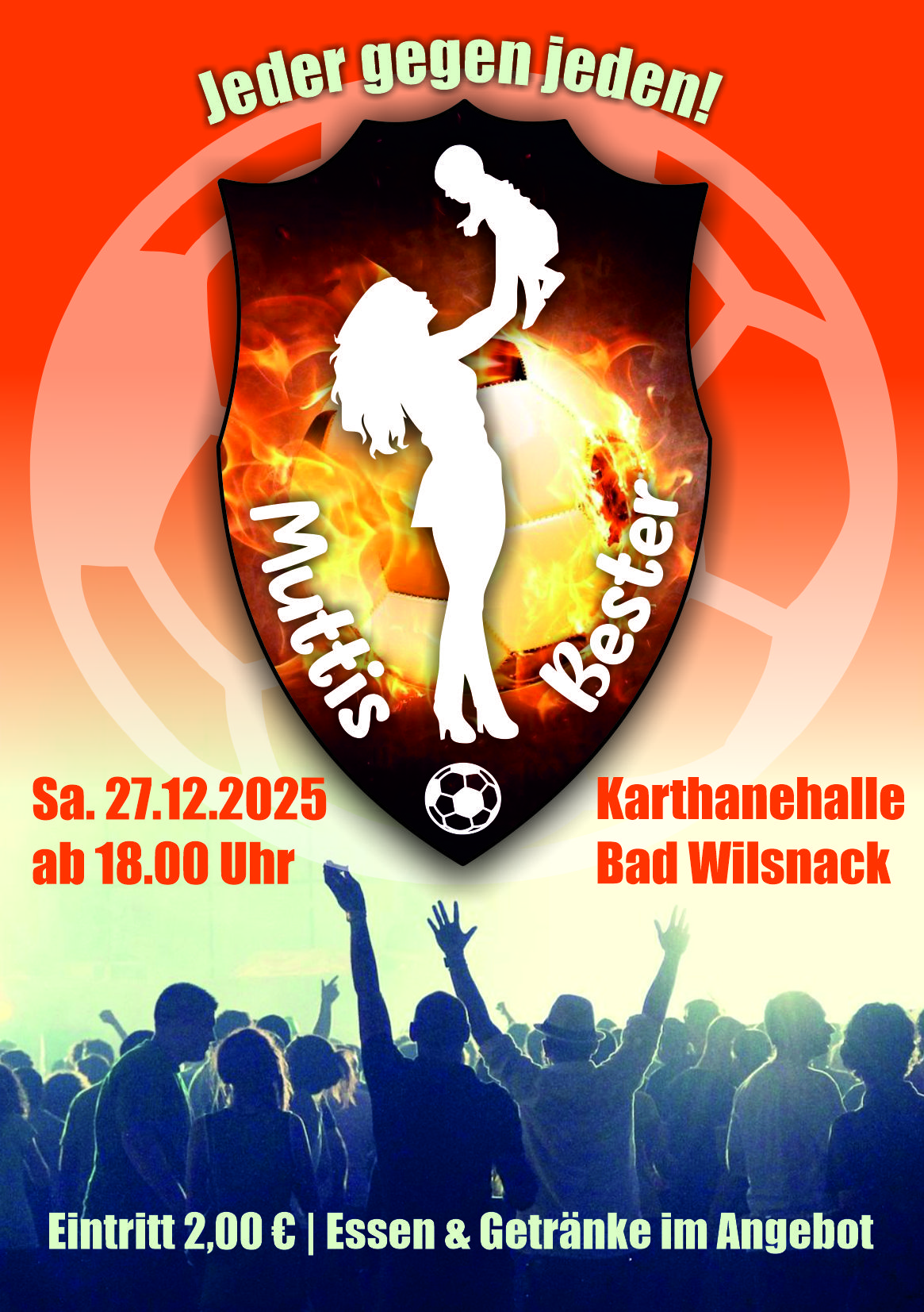 Das traditionelle Fußballturnier findet wieder am 27.12.2026 in der Karthanehalle statt.